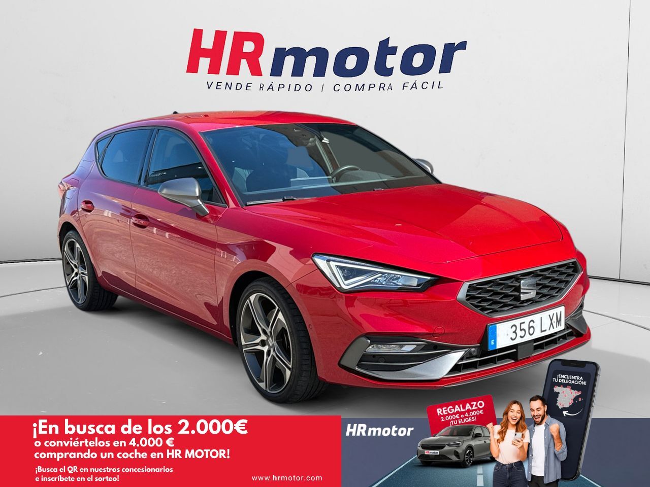 En HRmotor tenemos un coche como nuevo para ti esperándote. Disfrútalo con total tranquilidad, con hasta 2 años de garantía. Contamos con un stock de +3.000 coches de segunda mano para que puedas comprar un coche de ocasión que se adapte a todas tus necesidades y preferencias en nuestros más de 30 concesionarios repartidos en toda España. De esta manera nos encontramos en Madrid con 4 centros; en Barcelona con 4 centros; en Valencia con 3 centros; en Sevilla con 2 centros; en Málaga con 2 centros. Además, nos podrás encontrar también en Lleida, Girona, Castellón, Alicante, Bilbao, Gijón, Mallorca, Murcia, Pamplona, San Sebastián, Tudela, A Coruña, Valladolid, Zaragoza y Elche. Precio al contado de 20910€. o consultar condiciones. Seat Leon 1.5 TSI FR Go * Sujeto a condiciones. Consulte con su comercial V-0292904 ***EQUIPAMIENTO EXTRA:*** - Asistente a la conducción: activo Asistente de aparcamiento - Cámara de marcha atrás - Llantas de aleación 7,5x18 (5 radios dobles, Negro) - Rueda de repuesto de emergencia ***EQUIPAMIENTO SERIE:*** - Paquete confort Plus - Paquete Luz y Visión - Paquete-luz interior LED - paquete-dinámico - Taloneras de entrada iluminación - Retrovisor exterior gris - Faro Faros LED-Matrix - Intermitentes LED en Retrovisor exterior integrad. - Luces antiniebla LED con luz de curva - Asistente a la conducción: Reconocimiento de señales de tráfico - Luz de día LED - Paragolpes Design-FR - Lunas atérmicas - Ventanilla lateral detrás y Luna trasera tintadas - Receptor de radio digital (DAB+) - 6 Altavoces - Sistema de llamada de socorro - Conector-USB delante (2-posiciones, Modelo C) - SEAT Media-System Plus - Full Link (MirrorLink, Apple CarPlay y Android Auto) - Panel de instrumentos digital (virtual cockpit) - Ordenador de a bordo - Sistema audio-navegador con Touchscreen Pantalla en color - Indicador control neumáticos - Airbag conductor/acompañante - Airbag lateral delante centro (Central Airbag) - Sistema de airbag para la cabeza - Airbag lateral - Airbag acompañante Desconectable - Cubierta del maletero / Persiana - Techo interior Negro - Aire acondicionado Climatronic 3 zonas - asientos confort-deportivos delante - Asiento delante izquierda regulable en altura - Asiento delante derecha regulable en altura - Bolsas portaobjetos en respaldo asientos delant. - Soporte lumbar Asiento delante izquierda, regulable - Soporte lumbar Asiento delante derecha, regulable - Respaldo del asiento trasero dividido/abatible (1/3-2/3) - Elevalunas eléctric. delante + detrás con Cambio-confort - Sistema de encendido y apagado Kessy Advanced - Dispositivo de alarma para sistema-cinturón seguridad - Iluminación del espacio para los pies delante LED - Luces maletero/compartimento de carga - Guantera iluminación - Inmovilizador (electrónico) - Bocina de dos tonos - Enchufe (enchufe 12V) delante - Orejas de amarre Maletero/compartimento de carga - Anclajes Isofix para Asiento para niños - Cargador wireless para Smartphone - Sistema antibloqueo (ABS) - Freno de estacionamiento eléctric. con Freno con Autohold - Tren de rodaje deportivo - Asistente a la conducción: Sistema de aviso-cambio de vía - Asistente a la conducción: Reconocimiento de cansancio - Dirección asistida electromecánica - Diferencial autoblocante electrónico (XDS) - electrónico Control de estabilidad (ESC) - Regulación antideslizante (ASR) - Asistente a la conducción: Driving Profile Selection (SEAT Drive Profile) - Reducción polución según norma gases escape Euro 6d - Instalación de arranque y parada - Filtro partículas-Otto (GPF) (Filtro part. Otto) - FR Go - Carrocería: 5 puertas - Caja de cambios 6-marcha - Motor 1,5 Ltr. - 110 kW 16V TSI ACT
