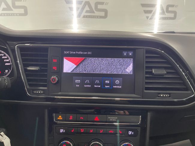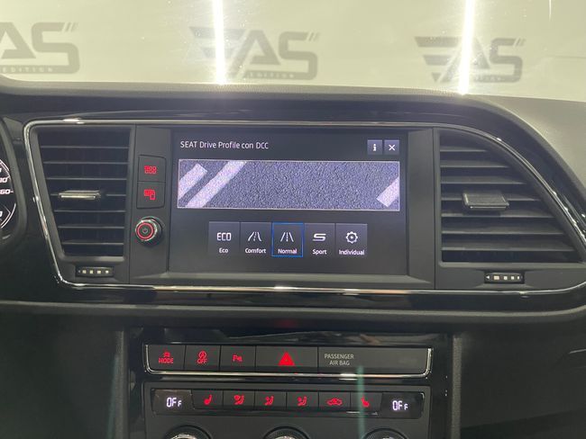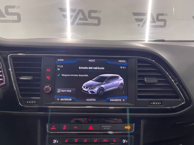 Seat León 2.0 TDI SS FR 150cv 5p Se entrega revisado – 2 Llaves Equipamiento: •? ?Techo panorámico electrónico •? ?Digital Cockpit •? ?Modos de conducción: ECO, Comfort, Normal, Sport, Individual •? ?Front Assist •? ?Faros full LED •? ?Detector de fatiga •? ?Asistente de cambio de carril •? ?Control de crucero adaptativo •? ?Detector de ángulo muerto •? ?Reconocimiento de señales de tráfico •? ?Sistema de arranque y entrada sin llave KEYLESS •? ?Carga inalámbrica de teléfono móvil •? ?Climatizador trizona •? ?Asientos delanteros deportivos •? ?Integración Android Auto y Apple CarPlay •? ?Control por voz •? ?Sensores de aparcamiento -delanteros, laterales, y traseros •? ?Cámara trasera •? ?Sistema de aparcamiento automático ¡ Tú nuevo coche te espera en Auto Select Edition ! Financiación 100% hasta 10 años, sin entrada (con vehículo semi-nuevos) Vehículo de + 15 años, no se pueden financiar ¡VEN A PROBARLO! Te esperamos en nuestro Showroom Para más información consulte a nuestro Dep. Comercial Todos los vehículos se entregan revisados Garantía: 12 meses (vehículos comerciales 6 meses) . Cambio de nombre incluido en el precio. . Posibilidad de aceptar vehículo como parte de pago. (Previa tasación) . Posibilidad de transporte a cualquier punto de España. (Consultar precio de entrega) TIENDA: C/ Ronda Sud, 7 · Pol. Ind. Recinte Firal 1· 17600 Figueres (Girona) Nuestro horario: Lunes a Viernes 10:00 a 13:00 h. (Todo el año) 16:00 a 20:00 h. (Junio hasta setiembre) 15:00 a 19:00 h. (Resto del año) Sábados : 10:00 a 14:00 h. (Todo el año) . Este anuncio no es vinculante, puede contener errores, se muestra a título informativo y no contractual.