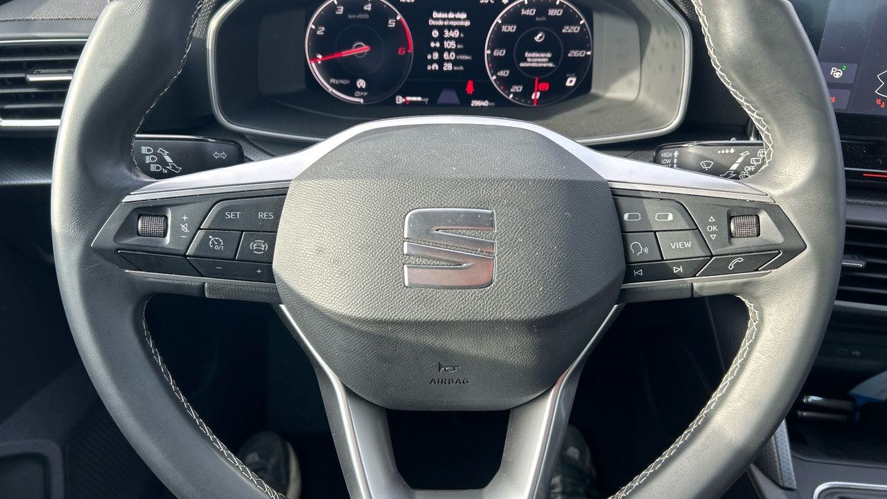 El SEAT León 2.0 TDI Style XM SP es un compacto que destaca por su equilibrio entre diseño, eficiencia y confort. Con motor diésel de 115 CV y solo 29.639 km, ofrece una conducción suave y económica, ideal para quienes combinan trayectos urbanos con viajes por carretera. Su color gris aporta un toque elegante y atemporal. En cuanto a equipamiento, incluye pantalla táctil con conectividad, climatizador bizona, control de crucero y sensores de aparcamiento para mayor comodidad. Las llantas de aleación y el sistema de arranque sin llave añaden funcionalidad y estilo. Es una opción perfecta para conductores que buscan practicidad diaria con un plus de tecnología y seguridad. Vehículo comercializado por Grupo Seligrat (Concesionario oficial de las marcas OPEL, PEUGEOT, KIA, HONDA, MITSUBISHI, CHANGAN, SUZUKI y MAXUS) con más de 50 años en el sector, especialistas en la venta de vehículos de ocasión online y presencial. Financiación 100% a tu medida, contacta con nosotros y te informamos sin compromiso. Posibilidad de entrega de tu coche como parte de pago, te damos la máxima tasación tanto presencial, como online. Financiación 100% a tu medida y hasta 3 años de garantía. ***EQUIPAMIENTO OPCIONAL INCLUIDO*** - Sistema de navegación con cartografía - Rueda de repuesto de 18 minimizada - Retrovisores exteriores plegables eléctricamente - Pintura metalizada - Cuadro de mandos digital ***EQUIPAMIENTO SERIE INCLUIDO*** - Cinco plazas ( 2+3 ) - Siete altavoces - Equipo de audio con radio AM/FM. RDS. radio digital y pantalla táctil pantalla a color - Control remoto de audio en el volante - Toma/s de 12v en la zona de carga y los asientos delanteros - Cuatro frenos de disco siendo dos ventilados - ABS - Preparación para teléfono móvil cargador y antena - Apertura a distancia del maletero con control remoto - Control de crucero - Espejo de cortesía en conductor en acompañante - Sensores de aparcamiento traseros con sensor - Combustible: diésel y Combustible primario: diésel - Acabados de lujo: consola central en símil aluminio. puertas en símil aluminio y tablero en símil aluminio - Faros con lente de superficie compleja. bombilla LED y luz larga con bombilla LED - Regulación de los faros con ajuste de altura automático y sensor de oscuridad - Luces antiniebla delanteras - Luces laterales maniobras/de bordillo - Encendido diurno automático - Airbag lateral de cortina delantero y trasero - Bandeja trasera flexible - Sujeción de carga - Cierre centralizado con mando a distancia y contról de los elevalunas - Portaequipajes longitudinal en el techo en color combinado con carrocería - Airbag frontal del conductor. airbag frontal del acompañante desconectable - Airbags laterales delanteros - Dos reposacabezas en asientos delanteros ajustables en altura. tres reposacabezas en asientos traseros ajustables en altura - Cinturón de seguridad delantero en asiento conductor y acompañante con pretensores - Cinturón de seguridad trasero en lado conductor. cinturón de seguridad trasero en lado acompañante. cinturón de seguridad trasero en asiento central de 3 puntos - Asientos de tela (material principal) y de tela (material secundario) - Apoyabrazos trasero - Asiento delantero del conductor individual. ajuste longitudinal manual. ajuste manual en altura y ajuste lumbar manual con ajuste manual del respaldo. asiento delantero del acompañante individual. ajuste longitudinal manual y ajuste manual en altura con ajuste manual del respaldo - Compartimentos bajo el asiento del conductor - Sujetavasos en los asientos delanteros - Sistema de ventilación con pantalla digital. filtro de pólen y filtro de carbón activo controles en pantalla táctil y calefacción del motor - Aire acondicionado de automático - Limpiaparabrisas delantero con sensor de lluvia - Elevalunas eléctricos delanteros y traseros con dos de ellos de un solo toque - Sistema de servofreno de emergencia - Indicador de baja presion de los neumáticos - Preparación Isofix - Tarjeta / llave inteligente con arranque sin llave - Telemática vía SIM en el vehículo con aviso avanzado automático de colisión y sistema de seguimiento - Freno mano electrónico - Filtro de partículas - Resultado de pruebas de impacto Euro NCAP :. puntuación global: 5.0. protección adultos: 92.0. protección niños: 88.0. protección peatones: 71.0. puntuación ayudas a la seguridad: 80.0. Versión evaluada: Seat Leon 1.5 petrol Xcellence 5dr HA LHD y Fecha del test: 09 dic 2020 - Control de arranque en pendiente - Sistema de alarma de colisión: activa las luces de freno con asistencia de frenado. sistema antiatropello peatones/ciclistas. monitorización del conductor y frenado a baja velocidad aviso visual/ acústico - Bluetooth - Start/Stop parada y arranque automático - Alerta de cambio de carril: activa la dirección - Conexión para: USB delantero. 2 y 0 - Botón de arranque del vehículo - Limitador de velocidad - Luces de freno. luces frontales antiniebla. luces de cruce. luces intermitentes laterales. Luces de día. Luces traseras y luces de carretera con tecnología LED - Recuperación de la energía motor - Sistema de dirección dinámica - Airbag central para asientos delanteros