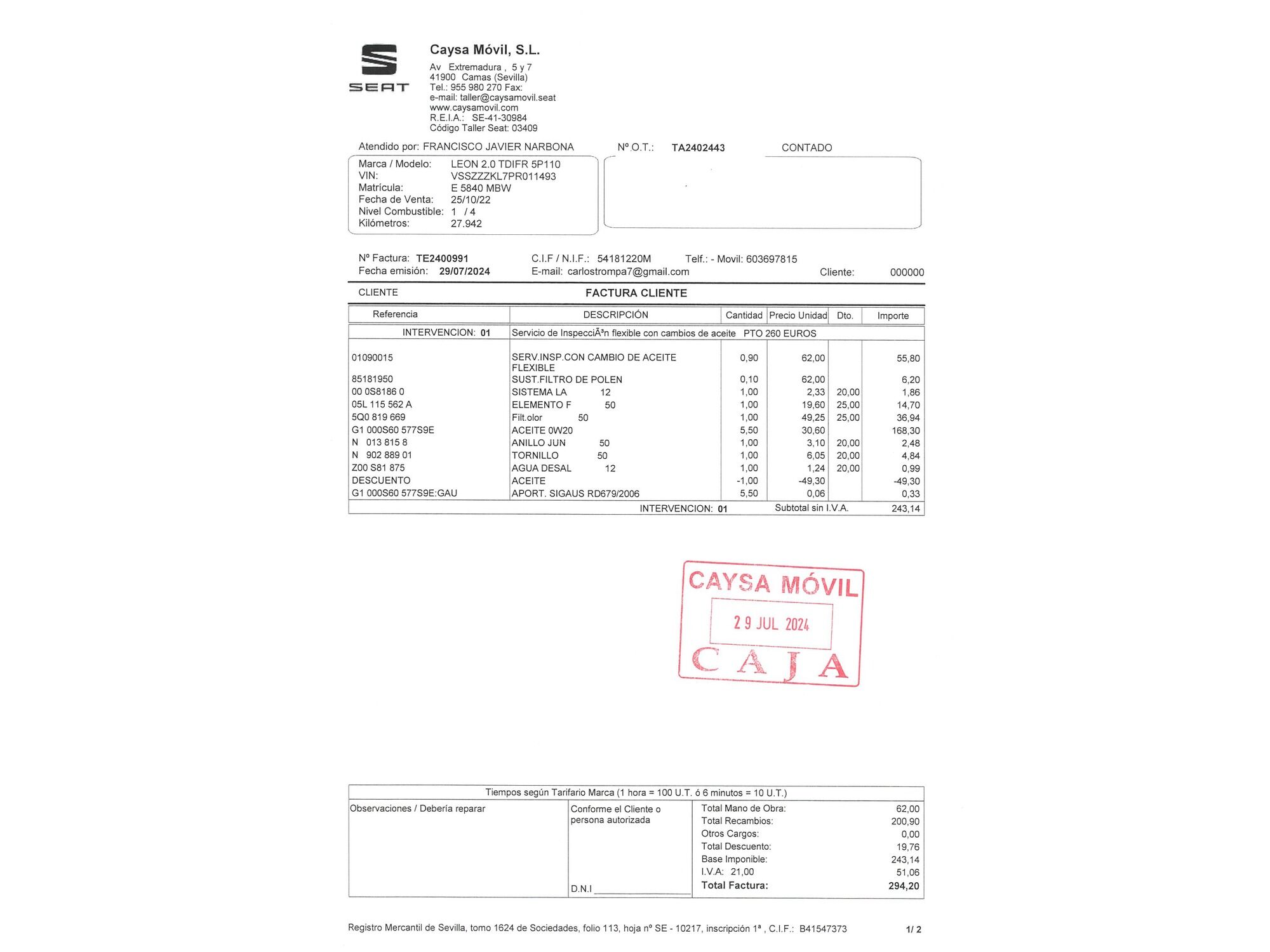 OCASIONPLUS - 20000 COCHES - 120 CENTROS OCASIONPLUS Nº1 CALIDAD - PRECIO Elige el coche que te guste y te lo llevamos a tu ciudad sólo con reservarlo 15 DÍAS / 1000 KMS DE PRUEBA Hasta 3899€ de descuento en este coche Precio oferta financiado: 19991€ (consulta condiciones específicas de promo - sujeta a aprobación de la entidad financiera) Precio al contado: 21990€ ADEMÁS, HACEMOS LAS MEJORES FINANCIACIONES DEL MERCADO, PREGÚNTANOS!! Equipamiento destacado: Tapicería cuero-tela, Navegador, Car Play, Control de crucero adaptativo, Asistente de aparcamiento, Cámara de marcha atrás, Ayuda aparcamiento, Faros delanteros led, Faros traseros led, Encendido automático de faros, Asistente de mantenimiento de carril, Sensor de lluvia, Control de velocidad, Limitador de velocidad, Volante multifunción, Freno de estacionamiento eléctrico, Aire Acondicionado (Climatizador), Arranque por botón, Bluetooth, Isofix, Llantas de aleación (17"). - Coche Nacional. - Garantía total 1 año, con cobertura nacional, ampliable a 24 meses. Garantía fabricante 10/2026 - Certificado de Kilómetros y ausencia de golpes estructurales. - Sobrevaloramos tu coche en operaciones de cambio. Tásalo ahora en ocasionplus.com - Entregamos cualquier coche en cualquier centro - Abierto Domingo y Festivos.