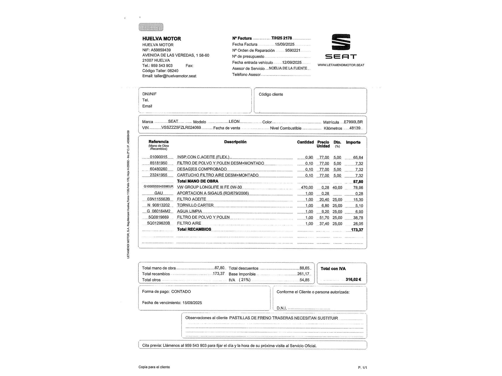 ¡LIQUIDACIÓN FIN DE AÑO DE OCASIONPLUS! LOS MEJORES PRECIOS DEL AÑO CON HASTA -40% DE DESCUENTO EN MÁS DE 16.000 COCHES. SÓLO HASTA EL 21 DE DICIEMBRE OCASIONPLUS - 16000 COCHES - 100 CENTROS OCASIONPLUS Nº1 CALIDAD - PRECIO Elige el coche que te guste y te lo llevamos a tu ciudad sólo con reservarlo 15 DÍAS / 1000 KMS DE PRUEBA Hasta 2444€ de descuento en este coche Precio oferta financiado: 17446€ (consulta condiciones específicas de promo - sujeta a aprobación de la entidad financiera) Precio al contado: 19190€ ADEMÁS, HACEMOS LAS MEJORES FINANCIACIONES DEL MERCADO, PREGÚNTANOS!! Equipamiento destacado: Tapicería cuero-tela, Techo solar, Navegador, Car Play, Control de crucero adaptativo, Faros delanteros led, Faros traseros led, Encendido automático de faros, Asistente de mantenimiento de carril, Sensor de lluvia, Control de velocidad, Volante multifunción, Freno de estacionamiento eléctrico, Aire Acondicionado (Climatizador), Arranque por botón, Bluetooth, Isofix, Llantas de aleación (17"). - Coche Nacional, Historial Mantenimiento. - Garantía total 1 año, con cobertura nacional, ampliable a 24 meses. - Certificado de Kilómetros y ausencia de golpes estructurales. - Sobrevaloramos tu coche en operaciones de cambio. Tásalo ahora en ocasionplus.com - Entregamos cualquier coche en cualquier centro - Abierto Domingo y Festivos.