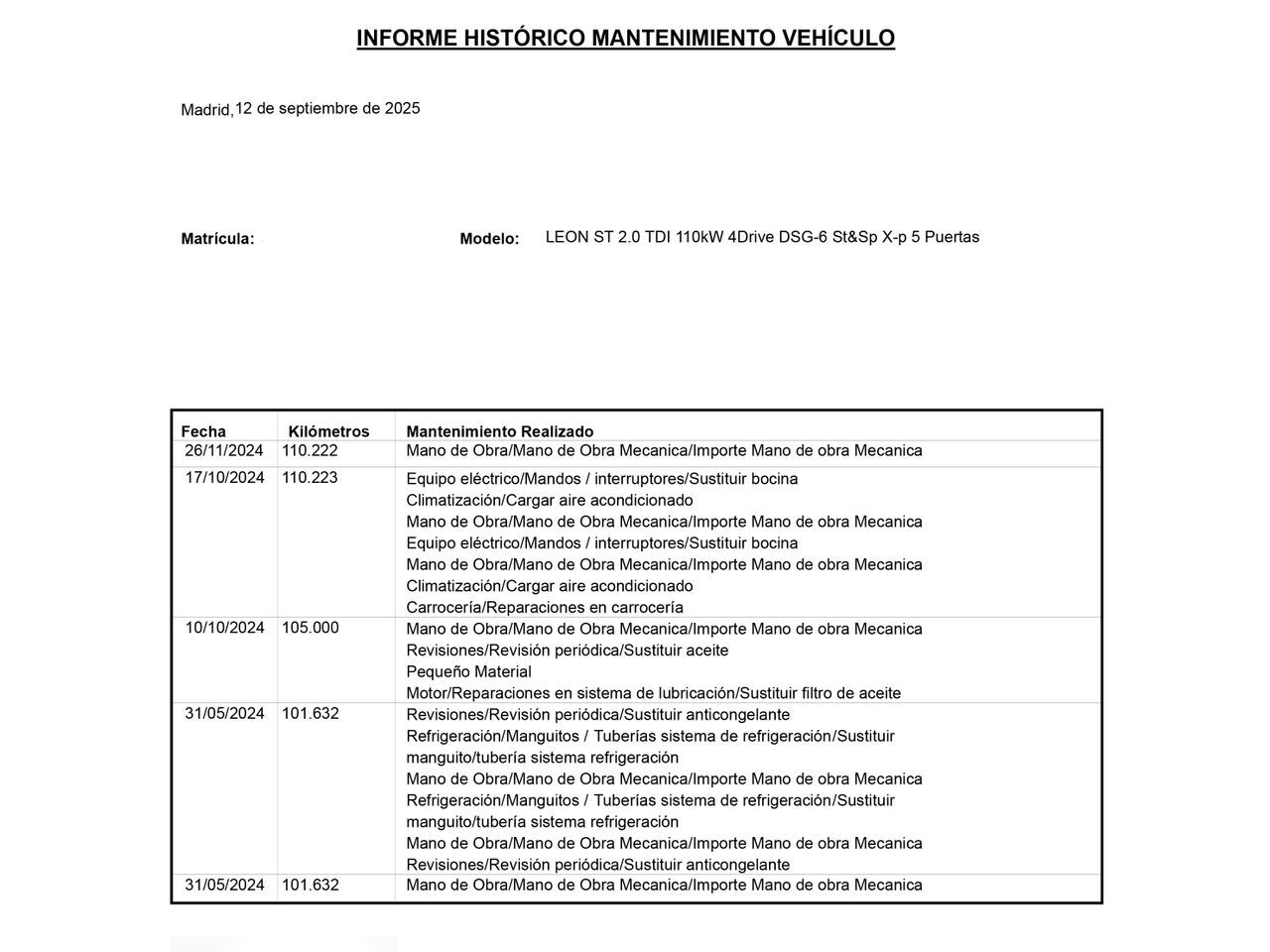 En HRmotor tenemos un coche como nuevo para ti esperándote. Disfrútalo con total tranquilidad, con hasta 2 años de garantía. Contamos con un stock de +3.000 coches de segunda mano para que puedas comprar un coche de ocasión que se adapte a todas tus necesidades y preferencias en nuestros más de 30 concesionarios repartidos en toda España. De esta manera nos encontramos en Madrid con 4 centros; en Barcelona con 4 centros; en Valencia con 3 centros; en Sevilla con 2 centros; en Málaga con 2 centros. Además, nos podrás encontrar también en Lleida, Girona, Castellón, Alicante, Bilbao, Gijón, Mallorca, Murcia, Pamplona, San Sebastián, Tudela, A Coruña, Valladolid, Zaragoza y Elche. Precio al contado de 15790€. o consultar condiciones. Seat Leon 2.0 TDI ST X-Perience 4Drive * Sujeto a condiciones. Consulte con su comercial V-0309018 ***EQUIPAMIENTO SERIE:*** - Mantenimiento del modelo - Paquete Luz interior LED - Retrovisor exterior regulable eléctricamente y calefactable, ambos - Retrovisor exterior y Agarraderos de la puerta ext. en color carrocería - Barras portaequipajes en el techo - Faros dobles - Intermitentes LED en Retrovisor exterior integrad. - Luces antiniebla con Luz de giro integrad. - 3. Luces de freno - Luz de día - Spoiler trasero - Paragolpes pintado - Lunas atérmicas - Sistema de control por voz - SEAT Media-System Touch Colour - Ordenador de a bordo - Indicador de la temperatura exterior - Indicador control neumáticos - Airbag de rodilla lado del conductor - Control de crucero (Cruise Control) - Airbag conductor/acompañante - Sistema de airbag para la cabeza - Airbag lateral - Airbag acompañante Desconectable - consola central ? y Portaobjetos - Reposabrazos central detrás - Cubierta del maletero / Persiana - Aire acondicionado Climatronic 2-zonas - Acabado interior: Aplicaciones en cromo - Asientos deportivos delante - Asiento delante izquierda regulable en altura - Asiento delante derecha regulable en altura - Soporte lumbar Asiento delante izquierda, regulable - Respaldo del asiento trasero dividido/abatible (1/3-2/3) - Respaldos de los asientos traseros con Desbloqueo a distancia abatible - Reposacabezas delante - Reposacabezas delante regulable - Reposacabezas detrás (3 posiciones) - Elevalunas eléctric. delante - Elevalunas eléctric. detrás - Cierre centralizado con Mando a distancia - Iluminación ambiente LED - Luces del maletero - Guantera iluminación - Retrovisor interior con sistema antideslumbramiento autom. - Inmovilizador (electrónico) - Enchufe (enchufe 12V) en Maletero/compartimento de carga - Enchufe (enchufe 12V) delante - Pomo palanca cambios cuero - Anclajes Isofix para Asiento para niños - Portaobjetos Debajo Asientos delante - Sistema antibloqueo (ABS) - Asistente del freno - Freno de estacionamiento eléctric. - Asistente a la conducción: Regulación adaptativa del tren de rodaje (DCC) - Llantas de aleación 7x17 (X-Perience) - Rueda de repuesto de emergencia - Volante (deportivo/cuero) - Volante con Palancas de cambio - Dirección asistida electromecánica - electrónico Control de estabilidad (ESC) - Diferencial autoblocante electrónico (EDS) - Regulación antideslizante (ASR) - Tipo transmisión: Tracción total - Asistente a la conducción: Driving Profile Selection (SEAT Drive Profile) - Asistente a la conducción: Asistente de subidas - Reducción polución según norma gases escape Euro 6 - Sistema Start/Stop - Filtro partículas - Carrocería: 5 puertas - Caja de cambios 6-marcha - Caja cambios doble embrague DSG - Motor 2,0 Ltr. - 110 kW TDI