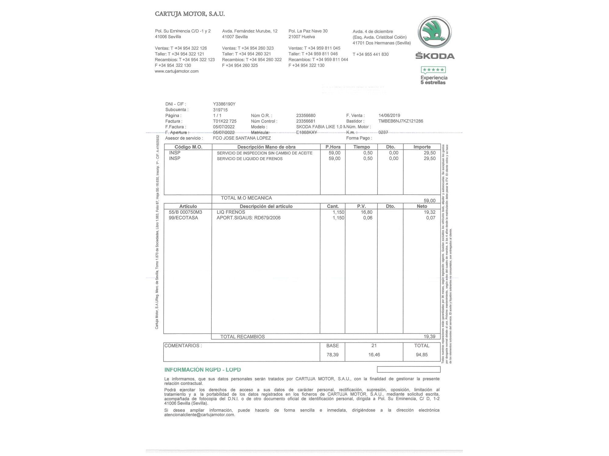 Skoda con 20.572 kilómetros de 2019 en Madrid