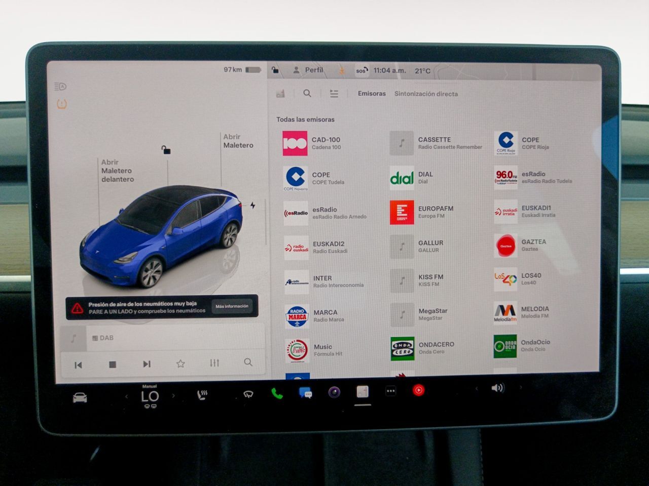 En HRmotor tenemos un coche como nuevo para ti esperándote. Disfrútalo con total tranquilidad, con hasta 2 años de garantía. Contamos con un stock de +3.000 coches de segunda mano para que puedas comprar un coche de ocasión que se adapte a todas tus necesidades y preferencias en nuestros más de 30 concesionarios repartidos en toda España. De esta manera nos encontramos en Madrid con 4 centros; en Barcelona con 4 centros; en Valencia con 3 centros; en Sevilla con 2 centros; en Málaga con 2 centros. Además, nos podrás encontrar también en Lleida, Girona, Castellón, Alicante, Bilbao, Gijón, Mallorca, Murcia, Pamplona, San Sebastián, Tudela, A Coruña, Valladolid, Zaragoza y Elche. Precio al contado de 29910€. o consultar condiciones. Model Y RWD * Sujeto a condiciones. Consulte con su comercial V-0304864 ***EQUIPAMIENTO SERIE:*** - Pintura especial blanco perlado - Retrovisor exterior calefactable y abatible eléctricamente - Techo de cristal panorámico - Faro LED - Regulación del alcance de las luces eléctric. - Luces antiniebla LED - Luz de día LED - Limpiaparabrisas con Sensor de lluvia - Eyectores de líquido limpiaparabrisas calefactable(s) - Receptor de radio Digital (DAB+) - Subwoofer - 14 Altavoces - Sistema de sonido Premium - Sistema procesador de voz Reconocimiento de idioma - Dispositivo manos libres Bluetooth - WLAN-Hotspot - pantalla táctil en color (15,0 Pulgada) - Conector-USB detrás (2-posiciones) - Sistema de navegación con Mapa / navegador - Sistema control presión neumáticos (TPMS) - Airbag de rodilla conductor/acompañante - Control de crucero (Tempomat) - Airbag conductor/acompañante - Sistema de airbag para la cabeza delante y detrás - Airbag lateral delante - Reposabrazos central delante con Guantera - Calefacción del asiento delante - Calefacción del asiento detrás - Acabado interior: Negro - Asientos delante regulable eléctricamente - Respaldo del asiento trasero dividido/abatible (60:40) - Cierre centralizado / Instalación de arranque Keyless Go (Botón-start-stop) - Cámara de marcha atrás - Sistema antibloqueo (ABS) - Asistente a la conducción: Piloto automático Generation 1.0 - Llantas de aleación 9,5x19 (Gemini) - Volante con Multifunción - Programa electrónico de estabilidad (ESP) - Carrocería: 5 puertas - Tipo transmisión: Transmisión trasera - Batalla 2890 mm - Caja de cambios para electroauto - Motor eléctrico 83 kW (Propulsión híbrida)