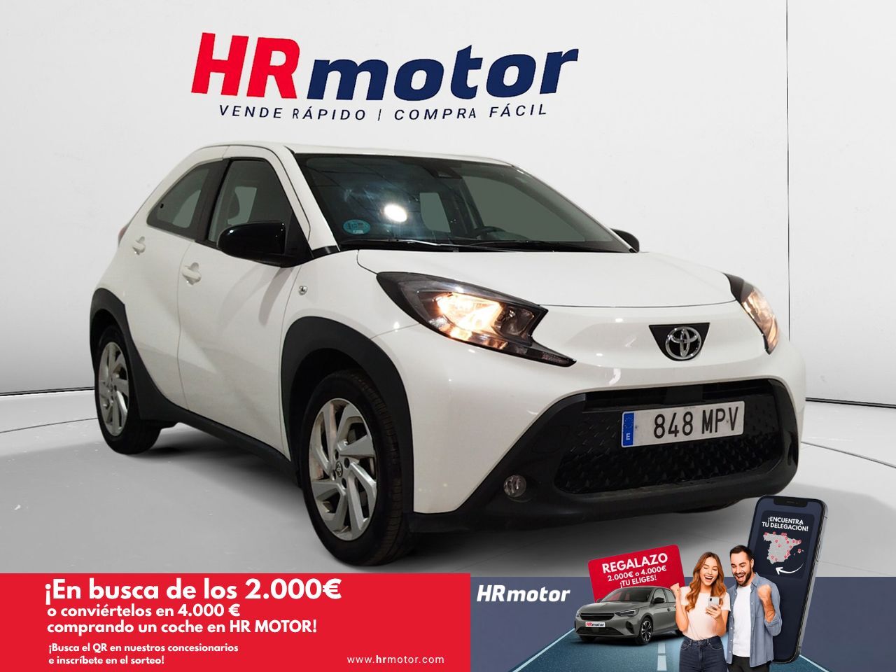 En HRmotor tenemos un coche como nuevo para ti esperándote. Disfrútalo con total tranquilidad, con hasta 2 años de garantía. Contamos con un stock de +3.000 coches de segunda mano para que puedas comprar un coche de ocasión que se adapte a todas tus necesidades y preferencias en nuestros más de 30 concesionarios repartidos en toda España. De esta manera nos encontramos en Madrid con 4 centros; en Barcelona con 4 centros; en Valencia con 3 centros; en Sevilla con 2 centros; en Málaga con 2 centros. Además, nos podrás encontrar también en Lleida, Girona, Castellón, Alicante, Bilbao, Gijón, Mallorca, Murcia, Pamplona, San Sebastián, Tudela, A Coruña, Valladolid, Zaragoza y Elche. Precio al contado de 15610€. o consultar condiciones. Toyota Aygo X 1.0 Play * Sujeto a condiciones. Consulte con su comercial V-0281733 ***EQUIPAMIENTO SERIE:*** - Retrovisor exterior Negro pintado - Faro LED - Luces antiniebla - Asistente a la conducción: Asistente luz carretera - Función automática de las luces (Coming Home, Leaving Home) - 3. Luces de freno - Luz de día LED - Paragolpes en color carrocería - Sistema de audio: Multimedia Toyota Touch - Mandos audio en volante - Sistema control presión neumáticos - Control de crucero (Tempomat) con Regulación de distancia - Sistema limitador de velocidad - Airbag conductor/acompañante - airbag de la ventana delante y detrás - Airbag lateral delante - Cubierta del maletero / Persiana - Aire acondicionado - Filtro de aire habitáculo interior - Asiento delante izquierda regulable en altura - Asiento trasero plegable - Asiento niño Isofix - Reposacabezas detrás - Agarraderos de la puerta inter. efecto-cromado - Cierre centralizado con Mando a distancia - Seguro para niños, manual - Agarraderos de la puerta ext. color carrocería - Dispositivo de alarma para Cinturones de seguridad delante - Dispositivo de alarma para Cinturones de seguridad detrás - Toyota Safety Sense - Parasoles con Espejo - Cámara de marcha atrás - Sistema antibloqueo (ABS) - Kit reparación de neumáticos - Volante (3 radios) - Volante (cuero) con Multifunción - Volante Aplicaciones en negro piano - Columna de dirección (Volante) regulable en altura - Dirección asistida eléctric. - Programa electrónico de estabilidad con Regulación antideslizante (VSC con TRC) - Reducción polución según norma gases escape Euro 6d - Sistema Start/Stop - Carrocería: 5 puertas - Caja de cambios 5-marcha - Motor 1,0 Ltr. - 53 kW CAT