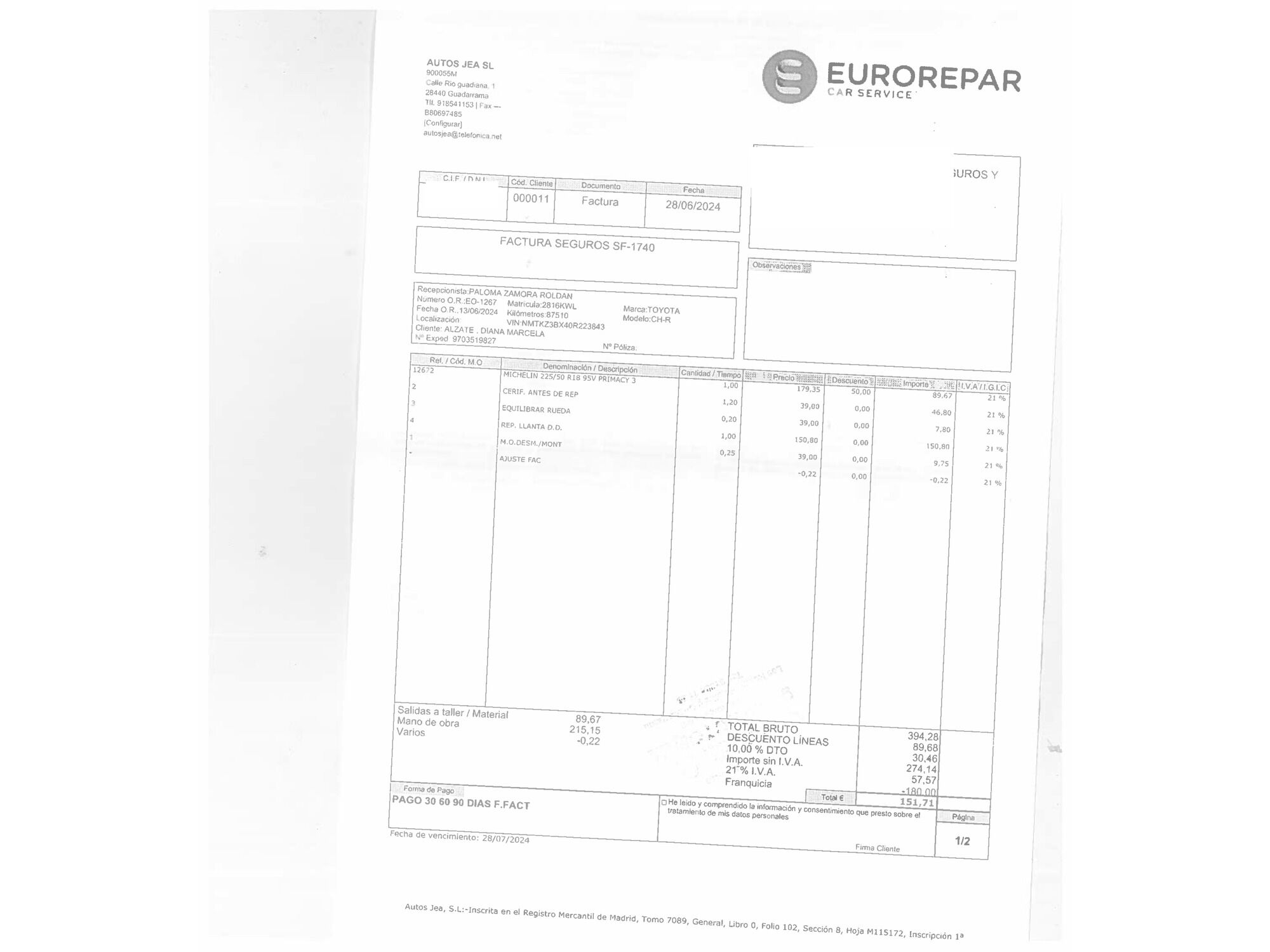Toyota con 107.628 kilómetros de 2019 en Madrid