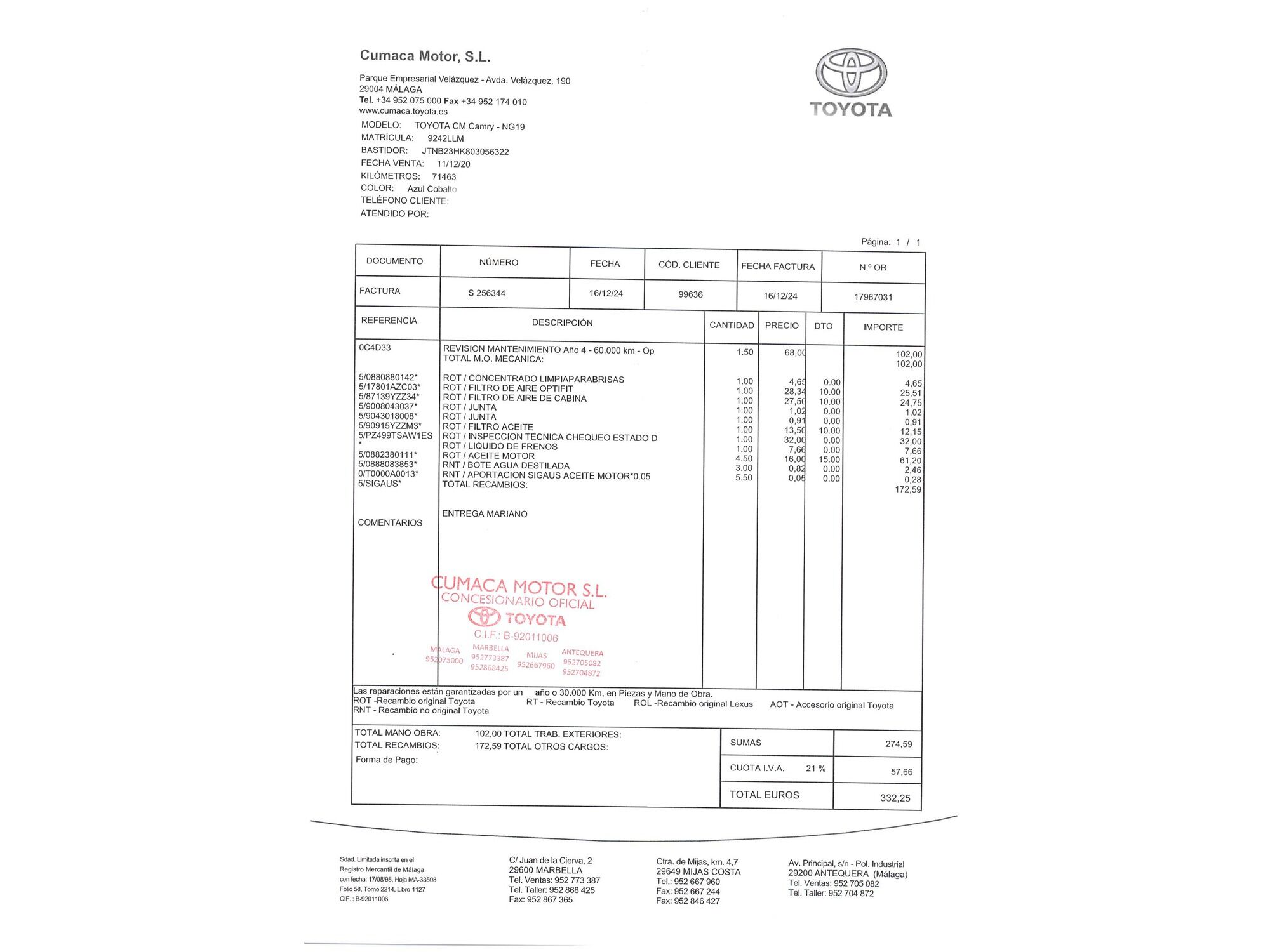 TOYOTA Camry (Camry 2.5 220H Luxury sedán) en Madrid