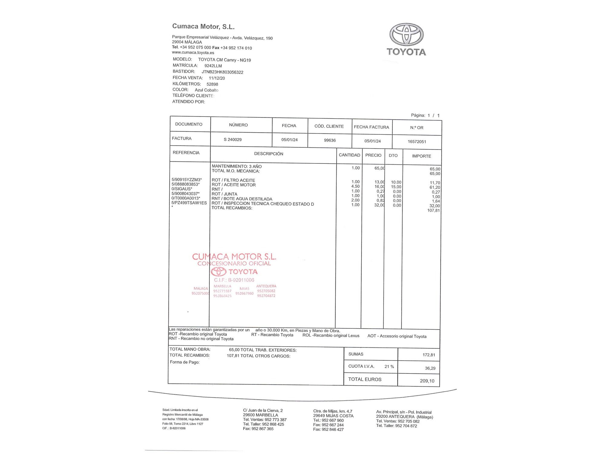 TOYOTA Camry (2.5 220H Advance) en Madrid
