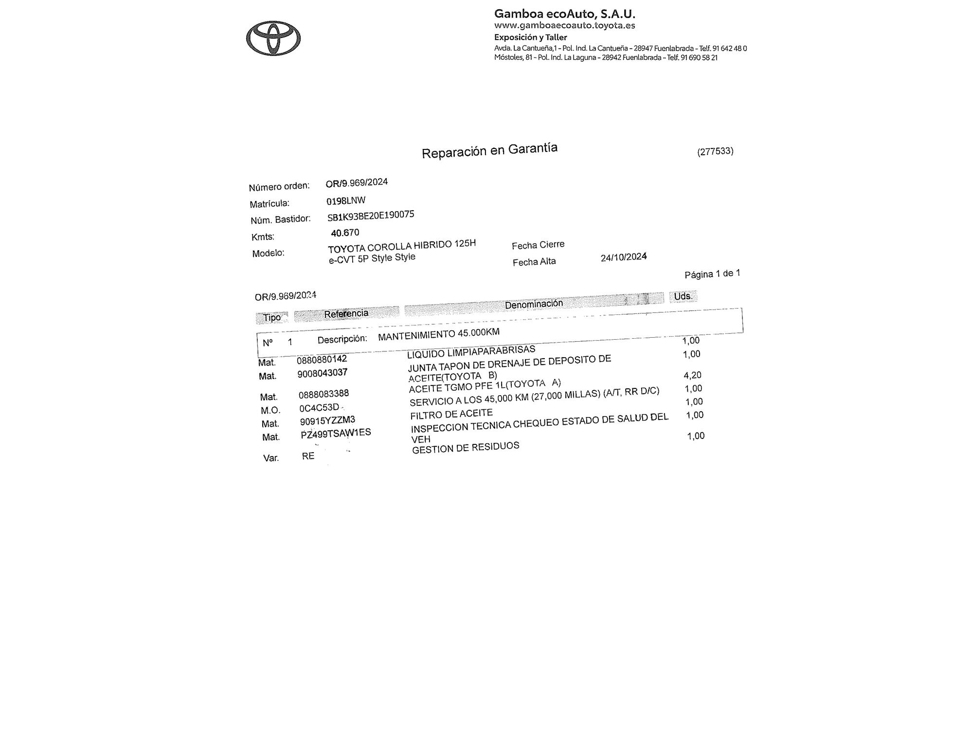 TOYOTA Corolla (Touring Sport 125H Style E-CVT 90 kW (122 CV)) en Madrid