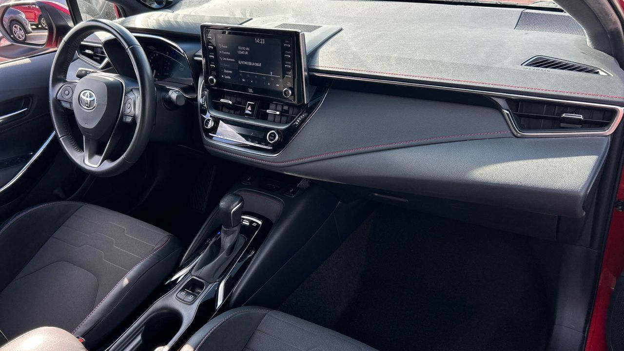 El Toyota Corolla 2.0 Hybrid Advance Luxury es una berlina que combina eficiencia y confort con un diseño elegante. Su motor híbrido de 122 CV y cambio automático e-CVT ofrece una conducción suave y silenciosa, ideal para quienes buscan reducir consumo sin renunciar a prestaciones. Con 76.335 km, mantiene la fiabilidad característica de la marca y un excelente estado general. En el interior encontrarás acabados de alta gama, pantalla multimedia con conectividad, climatizador bizona, control de crucero adaptativo y asistentes de seguridad que aportan tranquilidad en cada trayecto. Su color rojo y líneas modernas lo convierten en una opción perfecta para conductores que valoran estilo, tecnología y sostenibilidad. Vehículo comercializado por Grupo Seligrat (Concesionario oficial de las marcas OPEL, PEUGEOT, KIA, HONDA, MITSUBISHI, CHANGAN, SUZUKI y MAXUS) con más de 50 años en el sector, especialistas en la venta de vehículos de ocasión online y presencial. Financiación 100% a tu medida, contacta con nosotros y te informamos sin compromiso. Posibilidad de entrega de tu coche como parte de pago, te damos la máxima tasación tanto presencial, como online. Financiación 100% a tu medida y hasta 3 años de garantía. ***EQUIPAMIENTO SERIE INCLUIDO*** - Cinco plazas ( 2+3 ) - Ocho altavoces ( JBL ) - Equipo de audio con radio AM/FM. RDS. radio digital y pantalla táctil pantalla a color y radio reproduce MP3 - Control remoto de audio en el volante - Toma/s de 12v en los asientos delanteros - Cuatro frenos de disco siendo dos ventilados - ABS - Preparación para teléfono móvil cargador - Control de crucero con control de crucero adaptativo - Luces de lectura delanteras - Espejo de cortesía iluminado en conductor en acompañante - Sensores de aparcamiento delanteros con radar. sensores de aparcamiento traseros con radar y cámara. sensores de aparcamiento en los lados con radar - Combustible: sin plomo 95 octanos y Combustible primario: gasolina - Acabados de lujo: pomo de la palanca de cambios en cuero - Alfombrillas - Faros con lente elipsoidal. bombilla LED y luz larga con bombilla LED - Regulación de los faros dependiente de la velocidad con ajuste de altura automático. sensor de luz ambiental y sensor de vehículos en sentido contrario - Luces antiniebla delanteras - Encendido diurno automático - Airbag lateral de cortina delantero y trasero - Bandeja trasera rígida - Sujeción de carga - Cierre centralizado con apertura por tarjeta/llave inteligente - Portaequipajes longitudinal en el techo - Airbag frontal del conductor inteligente. airbag frontal del acompañante desconectable y inteligente - Airbags laterales delanteros - Dos reposacabezas en asientos delanteros ajustables en altura. tres reposacabezas en asientos traseros ajustables en altura - Cinturón de seguridad delantero en asiento conductor. acompañante y ajustable en altura con pretensores - Cinturón de seguridad trasero en lado conductor. cinturón de seguridad trasero en lado acompañante. cinturón de seguridad trasero en asiento central de 3 puntos - Asientos de tela (material principal) y de cuero (material secundario) - Apoyabrazos central delantero - Asiento delantero del conductor deportivo con ajuste eléctrico ( cuatro ajustes eléctricos ) térmico. eléctrico. ajuste eléctrico en altura y eléctrico con ajuste eléctrico del respaldo. asiento delantero del acompañante deportivo con ajuste eléctrico ( tres ajustes eléctricos ) térmico. eléctrico y ajuste eléctrico en altura con ajuste eléctrico del respaldo - Sujetavasos en los asientos delanteros y los asientos traseros - Sistema de ventilación con pantalla digital y filtro de pólen eléctrico - Controles de climatización diferenciados digitales para conductor/acompañante - Aire acondicionado bizona de automático - Limpiaparabrisas delantero con sensor de lluvia - Elevalunas eléctricos delanteros y traseros con dos de ellos de un solo toque - Consola en el suelo - Distribución electrónica de la frenada - Sistema de servofreno de emergencia - Indicador de baja presion de los neumáticos con sensor Montado en la llanta - Red seguridad de carga - Preparación Isofix - Tarjeta / llave inteligente automática con entrada sin llave y arranque sin llave - Sistema activacion por voz del teléfono - Freno mano electrónico - Sensor de adelantamiento - Filtro de partículas - Resultado de pruebas de impacto Euro NCAP :. puntuación global: 5.00. protección adultos: 95.00. protección niños: 84.00. protección peatones: 86.00. puntuación ayudas a la seguridad: 77.00. Versión evaluada: Toyota Corolla Hatchback 1.8 5dr Hatchback LHD y Fecha del test: 22 may 2019 - Airbag de rodilla para el conductor - Control de arranque en pendiente - Sistema de alarma de colisión: activa las luces de freno con asistencia de frenado. sistema antiatropello peatones/ciclistas. monitorización del conductor y frenado a baja velocidad de 10 Km/h como mínimo aviso visual/ acústico. distancia programable. funciona por encima de 130 km/h / 78 mph. funciona por encima de 50 km/h / 30 mph y funciona por debajo de 50 km/h / 30 mph - Bluetooth ( incluye música por 'streaming' ) - Start/Stop parada y arranque automático - Alerta de cambio de carril: activa la dirección - Cristal trasero oscurecido en el lateral trasero - Conexión para: entrada AUX delantera. USB delantero. 1 y 0 - Botón de arranque del vehículo - Sistema de asistencia de aparcamiento trasero con aparcam. automático perpendicular/salida - Limitador de velocidad - Luces de freno. luces frontales antiniebla. luces de cruce. Luces de día. Luces traseras y luces de carretera con tecnología LED - Recuperación de la energía motor - Informacion Espacio para Parking - Hibrido activo - Reconocimiento señales de tráfico - Modos de conducción con cartografía del motor - Un motor eléctrico de 65.3 CV y 48.0 kW con 202 Nm de par maximo motor síncrono de imán permanente de CA