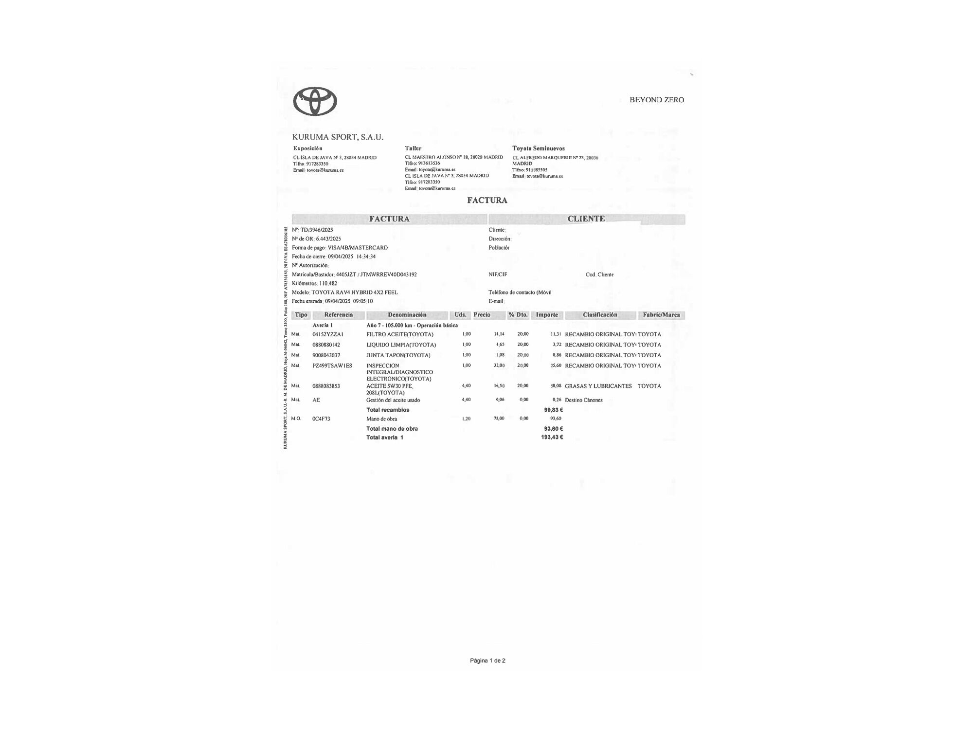 Toyota con 117.554 kilómetros de 2017 en Madrid