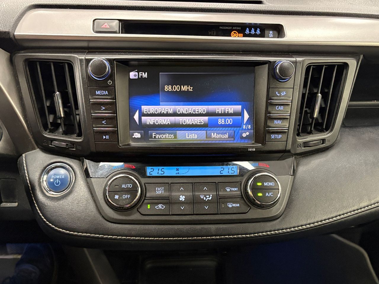 En HRmotor tenemos un coche como nuevo para ti esperándote. Disfrútalo con total tranquilidad, con hasta 2 años de garantía. Contamos con un stock de +3.000 coches de segunda mano para que puedas comprar un coche de ocasión que se adapte a todas tus necesidades y preferencias en nuestros más de 30 concesionarios repartidos en toda España. De esta manera nos encontramos en Madrid con 4 centros; en Barcelona con 4 centros; en Valencia con 3 centros; en Sevilla con 2 centros; en Málaga con 2 centros. Además, nos podrás encontrar también en Lleida, Girona, Castellón, Alicante, Bilbao, Gijón, Mallorca, Murcia, Pamplona, San Sebastián, Tudela, A Coruña, Valladolid, Zaragoza y Elche. Precio al contado de 22490€. o consultar condiciones. Toyota RAV4 2.5I Feel Hybrid 2WD * Sujeto a condiciones. Consulte con su comercial V-0314760 ***EQUIPAMIENTO SERIE:*** - Mantenimiento del modelo - Estribo de protección frontal con protección de bajos - protección de bajos detrás - Retrovisor exterior plegable eléctricamente - Retrovisor exterior regulable eléctricamente y calefactable - Intermitente en Retrovisor exterior integrad. - Faros Bi-LED - Encendido aut. luces de carretera - Asistente a la conducción: Asistente luz carretera adaptativa - Asistente a la conducción: Reconocimiento de señales de tráfico - Luz antiniebla trasera - 3. Luces de freno - Luz de día LED - Limpiaparabrisas con Sensor de lluvia - Lunas detrás tintadas - 4 Altavoces - Sistema de sonido JBL Premium (incl. Subwoofer) - Ayuda aparcamiento delante - Ayuda aparcamiento detrás - Airbag de rodilla lado del conductor - Airbag conductor/acompañante - Sistema de airbag para la cabeza - Airbag lateral delante - Climatizador automático 2-zonas - Calefacción del asiento delante - tapicería asientos: cuero/Alcántara - Asiento delante izquierda regulable eléctricamente (8 posiciones) - Elevalunas eléctric. delante + detrás - Pre-Crash-System y Control de crucero adaptable - Retrovisor interior con sistema antideslumbramiento autom. - Cámara de marcha atrás - Sistema antibloqueo (ABS) - Distribuidor eléctrónico de frenada - Asistente a la conducción: Sistema pre-colisión - Asistente a la conducción: Sistema de aviso-cambio de vía - Volante (cuero) - Dirección asistida eléctric. - Programa electrónico de estabilidad con Regulación antideslizante (VSC con TRC) - Reducción polución según norma gases escape Euro 6 - Motor 2,5 Ltr. - 114 kW 16V Híbrido - Carrocería: 5 puertas - Tipo transmisión: Tracción delantera - Batalla 2670 mm - Caja de cambios automática continua - Multidrive ECVT