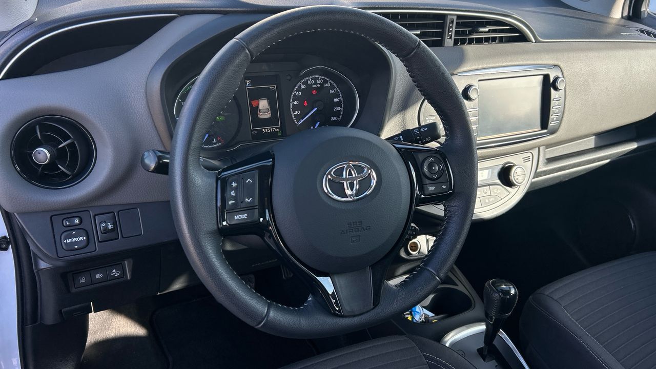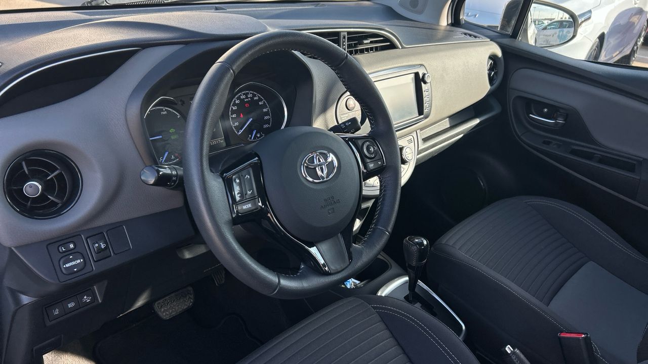 Este Toyota Yaris Hybrid Active con motor 1.5 VVT-i de 100 CV y cambio automático es una excelente opción para quienes buscan eficiencia sin renunciar al confort. Con 53.397 km, este compacto híbrido ofrece una conducción suave, silenciosa y especialmente cómoda en entornos urbanos, gracias a su sistema híbrido autorrecargable que optimiza el consumo y reduce emisiones. El acabado Active incluye equipamiento funcional como pantalla táctil con conectividad, cámara trasera, climatizador automático, control de crucero y asistente de arranque en pendiente. Su carrocería en blanco aporta un estilo limpio y moderno. Es ideal para conductores que valoran la sostenibilidad, la facilidad de uso y un mantenimiento sencillo en su día a día. Financiación 100% a tu medida y hasta 3 años de garantía. Aceptamos tu coche como parte de pago, con la máxima tasación tanto presencial como online. ***EQUIPAMIENTO SERIE INCLUIDO*** - Cinco plazas ( 2+3 ) - Seis altavoces - Equipo de audio con radio AM/FM. RDS y pantalla táctil pantalla a color - Control remoto de audio en el volante - Toma/s de 12v en los asientos delanteros - Cuatro frenos de disco siendo dos ventilados - ABS - Control de crucero - Luces de lectura delanteras - Espejo de cortesía en conductor en acompañante - Combustible: sin plomo y Combustible primario: gasolina - Acabados de lujo: pomo de la palanca de cambios en aluminio y cuero. consola central en aluminio simil y tablero en aluminio simil - Faros con lente elipsoidal. bombilla halógena y luz larga con bombilla halógena - Regulación de los faros con ajuste de altura manual y sensor de vehículos en sentido contrario - Luces antiniebla delanteras - Encendido diurno automático - Airbag lateral de cortina delantero y trasero - Bandeja trasera rígida - Cierre centralizado con mando a distancia - Airbag frontal del conductor. airbag frontal del acompañante desconectable - Airbags laterales delanteros - Dos reposacabezas en asientos delanteros ajustables en altura. tres reposacabezas en asientos traseros ajustables en altura - Cinturón de seguridad delantero en asiento conductor y acompañante con pretensores - Cinturón de seguridad trasero en lado conductor. cinturón de seguridad trasero en lado acompañante. cinturón de seguridad trasero en asiento central de 3 puntos - Asientos de tela (material principal) y de tela (material secundario) - Asiento delantero del conductor individual. ajuste longitudinal manual y ajuste manual en altura con ajuste manual del respaldo. asiento delantero del acompañante individual y ajuste longitudinal manual con ajuste manual del respaldo - Sujetavasos en los asientos delanteros y los asientos traseros - Sistema de ventilación con pantalla digital y filtro de pólen - Controles de climatización diferenciados digitales para conductor/acompañante - Aire acondicionado bizona de automático - Cristales tintados - Limpiaparabrisas delantero con sensor de lluvia - Elevalunas eléctricos delanteros con uno de ellos de un solo toque - Consola en el suelo - Distribución electrónica de la frenada - Sistema de servofreno de emergencia - Indicador de baja presion de los neumáticos con sensor Montado en la llanta - Preparación Isofix - Resultado de pruebas de impacto Euro NCAP :. puntuación global: 5.00. protección adultos: 83.00. protección niños: 80.00. protección peatones: 63.00. puntuación ayudas a la seguridad: 57.00. Versión evaluada: Toyota Yaris Hybrid 5dr HA y Fecha del test: 13 dic 2017 - Airbag de rodilla para el conductor - Control de arranque en pendiente - Encendido automático luces emergencia - Sistema de alarma de colisión: activa las luces de freno con asistencia de frenado de 10 Km/h como mínimo aviso visual/ acústico - Bluetooth ( incluye música por 'streaming' ) - Start/Stop parada y arranque automático - Alerta de cambio de carril: - Conexión para: USB delantero - Recuperación de la energía - Hibrido activo - Reconocimiento señales de tráfico - Memoria interna/disco duro: - Un motor eléctrico de 60.0 CV y 45.0 kW con 169 Nm de par maximo motor síncrono de imán permanente de CA
