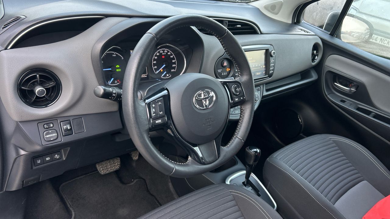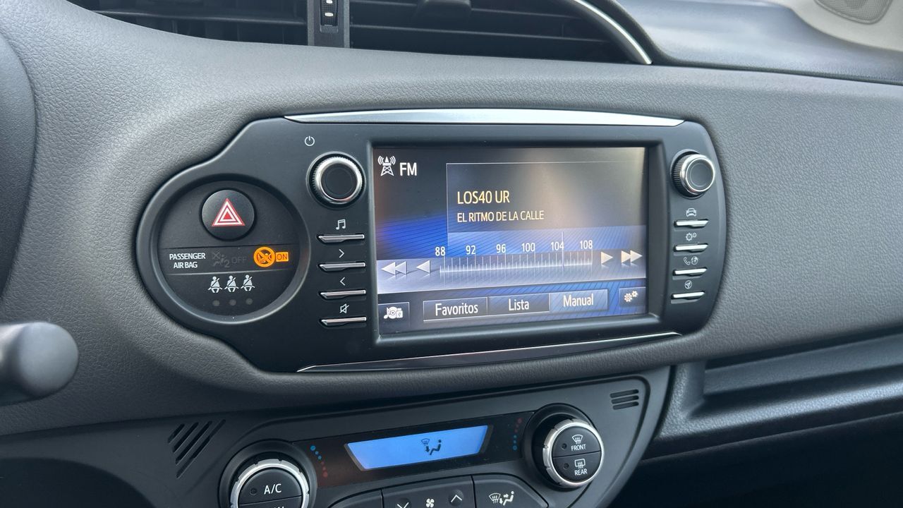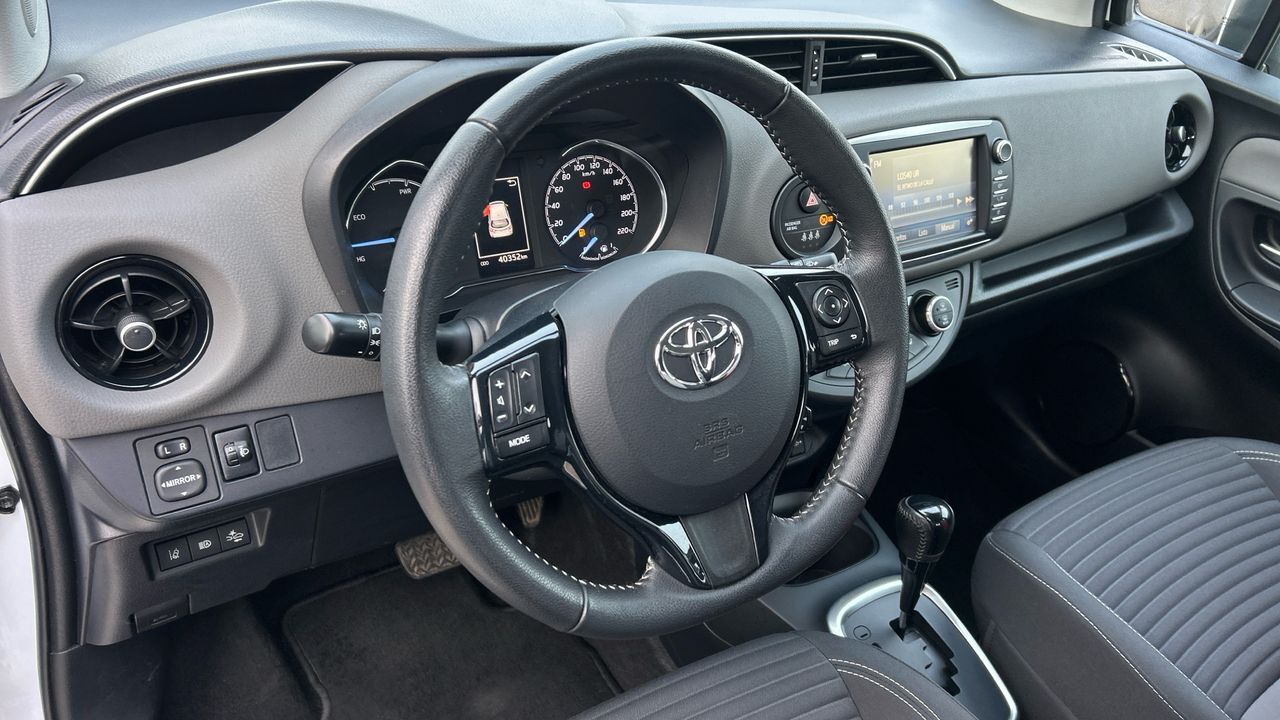 El Toyota Yaris 1.5 VVT-i Hybrid Active es un compacto que destaca por su eficiencia y facilidad de conducción. Con motor híbrido de 100 CV y cambio automático, ofrece una experiencia suave y silenciosa, perfecta para moverse por ciudad y afrontar desplazamientos diarios con un consumo reducido. Su color blanco aporta un aspecto limpio y moderno, acorde con su diseño funcional. Este modelo incluye climatizador automático, pantalla táctil con conectividad, cámara trasera y control de crucero, además de sistemas de seguridad activa que refuerzan la confianza al volante. Con 40.329 km, es una opción ideal para conductores que buscan practicidad, tecnología y un coste de uso contenido sin renunciar al confort. Vehículo comercializado por Grupo Seligrat (Concesionario oficial de las marcas OPEL, PEUGEOT, KIA, HONDA, MITSUBISHI, CHANGAN, SUZUKI y MAXUS) con más de 50 años en el sector, especialistas en la venta de vehículos de ocasión online y presencial. Financiación 100% a tu medida, contacta con nosotros y te informamos sin compromiso. Posibilidad de entrega de tu coche como parte de pago, te damos la máxima tasación tanto presencial, como online. Financiación 100% a tu medida y hasta 3 años de garantía. ***EQUIPAMIENTO SERIE INCLUIDO*** - Cinco plazas ( 2+3 ) - Seis altavoces - Equipo de audio con radio AM/FM. RDS y pantalla táctil pantalla a color - Control remoto de audio en el volante - Toma/s de 12v en los asientos delanteros - Cuatro frenos de disco siendo dos ventilados - ABS - Control de crucero - Luces de lectura delanteras - Espejo de cortesía en conductor en acompañante - Combustible: sin plomo y Combustible primario: gasolina - Acabados de lujo: pomo de la palanca de cambios en aluminio y cuero. consola central en aluminio simil y tablero en aluminio simil - Faros con lente elipsoidal. bombilla halógena y luz larga con bombilla halógena - Regulación de los faros con ajuste de altura manual y sensor de vehículos en sentido contrario - Luces antiniebla delanteras - Encendido diurno automático - Airbag lateral de cortina delantero y trasero - Bandeja trasera rígida - Cierre centralizado con mando a distancia - Airbag frontal del conductor. airbag frontal del acompañante desconectable - Airbags laterales delanteros - Dos reposacabezas en asientos delanteros ajustables en altura. tres reposacabezas en asientos traseros ajustables en altura - Cinturón de seguridad delantero en asiento conductor y acompañante con pretensores - Cinturón de seguridad trasero en lado conductor. cinturón de seguridad trasero en lado acompañante. cinturón de seguridad trasero en asiento central de 3 puntos - Asientos de tela (material principal) y de tela (material secundario) - Asiento delantero del conductor individual. ajuste longitudinal manual y ajuste manual en altura con ajuste manual del respaldo. asiento delantero del acompañante individual y ajuste longitudinal manual con ajuste manual del respaldo - Sujetavasos en los asientos delanteros y los asientos traseros - Sistema de ventilación con filtro de pólen - Controles de climatización diferenciados digitales para conductor/acompañante - Aire acondicionado bizona de automático - Limpiaparabrisas delantero con sensor de lluvia - Elevalunas eléctricos delanteros con uno de ellos de un solo toque - Consola en el suelo - Distribución electrónica de la frenada - Sistema de servofreno de emergencia - Indicador de baja presion de los neumáticos con sensor Montado en la llanta - Preparación Isofix - Resultado de pruebas de impacto Euro NCAP :. puntuación global: 5.00. protección adultos: 83.00. protección niños: 80.00. protección peatones: 63.00. puntuación ayudas a la seguridad: 57.00. Versión evaluada: Toyota Yaris Hybrid 5dr HA y Fecha del test: 13 dic 2017 - Airbag de rodilla para el conductor - Control de arranque en pendiente - Sistema de alarma de colisión: activa las luces de freno con asistencia de frenado de 10 Km/h como mínimo aviso visual/ acústico - Bluetooth ( incluye música por 'streaming' ) - Start/Stop parada y arranque automático - Alerta de cambio de carril: - Conexión para: USB delantero - Recuperación de la energía motor - Hibrido activo - Reconocimiento señales de tráfico - Memoria interna/disco duro: - Un motor eléctrico de 60.0 CV y 45.0 kW con 169 Nm de par maximo motor síncrono de imán permanente de CA