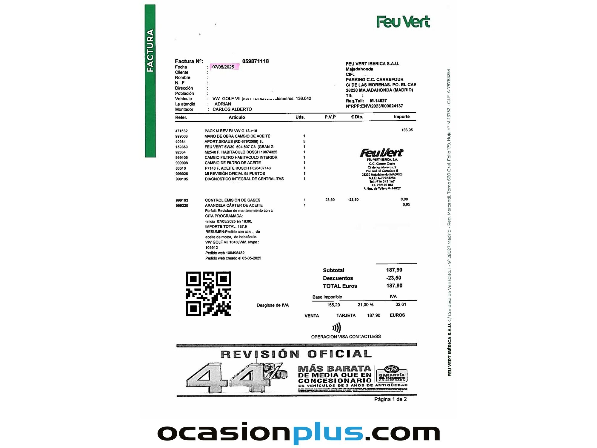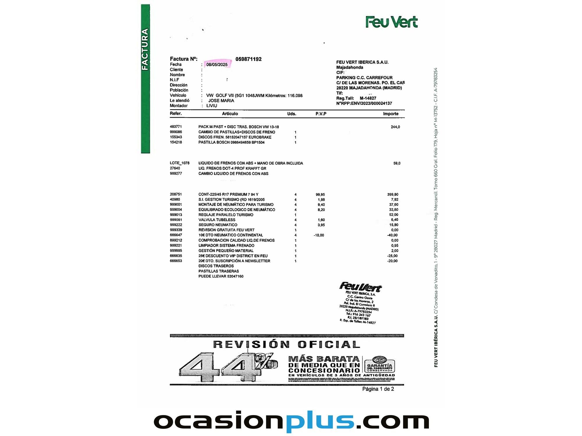 ¡LLEGA LA FERIA DE OTOÑO A OCASIONPLUS! HASTA 8.000 € DE DESCUENTO EN MÁS DE 16.000 COCHES.. OCASIONPLUS - 16000 COCHES - 100 CENTROS OCASIONPLUS Nº1 CALIDAD - PRECIO Elige el coche que te guste y te lo llevamos a tu ciudad sólo con reservarlo 15 DÍAS / 1000 KMS DE PRUEBA Hasta 400€ de descuento en este coche ADEMÁS, HACEMOS LAS MEJORES FINANCIACIONES DEL MERCADO, PREGÚNTANOS!! Equipamiento destacado: Paquete R-Line, Faros bixenón, Ayuda aparcamiento, Encendido automático de faros, Sensor de lluvia, Sensor de presión de neumáticos, Start/Stop automático, Control de velocidad, Limitador de velocidad, Volante multifunción, Aire Acondicionado (Climatizador), Bluetooth, Isofix, Freno de estacionamiento eléctrico, Llantas de aleación (17"). - Coche Nacional, Historial Mantenimiento, Único propietario. - Garantía total 1 año, con cobertura nacional, ampliable a 24 meses. - Certificado de Kilómetros y ausencia de golpes estructurales. - Sobrevaloramos tu coche en operaciones de cambio. Tásalo ahora en ocasionplus.com - Entregamos cualquier coche en cualquier centro - Abierto Domingo y Festivos.