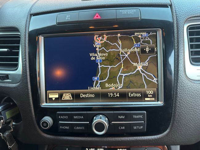 AUTOS DONAIRE COMPRAVENTA DE VEHICULOS + 150 COCHES EN STOCK – ENTREGA INMEDIATA TE COMPRAMOS TU COCHE Y TE PAGAMOS AL MOMENTO FINANCIAMOS 100% - TU ELIGES TU COUTA VW TOUAREG 3.0 TDI BLUEMOTION – VEHICULO NACIONAL CON SUS REVISIONES AL DIA PRECIO CONTADO: 13.500 € PRECIO CON OFERTA FINANCIACION: 12.500 € (consulta condiciones específicas de esta promoción – sujeto a aprobación por parte de entidad financiera) EQUIPAMIENTO DESTACADO: Paquete cromado, galerías de techo, paragolpes confort, faros de xenón adaptativos, lavafaros, boquillas de limpiaparabrisas térmicas, asistente de cambio de carril – side assist-, servocierre de portón, climatizador del+tras, tapizado en cuero, calefacción adicional, asientos confort, asientos eléctricos, apoyabrazos trasero, parasoles dobles, volante eléctrico, regulador de velocidad, alarma, navegador, sistema de sonido 8 altavoces, manos libres, airbag de rodillas, airbag laterales traseros, 8 velocidades triptonic, suspensión neumática, llantas 18” GARANTÍA 12 MESES, AMPLIABLE A 24 MESES (CONSULTAR) Anuncio no vinculante, puede contener errores, solo se muestra a título informativo y no contractual. Pueden existir varias unidades del modelo ofertado, consultar con nuestro personal precio y kilometraje de cada vehículo.