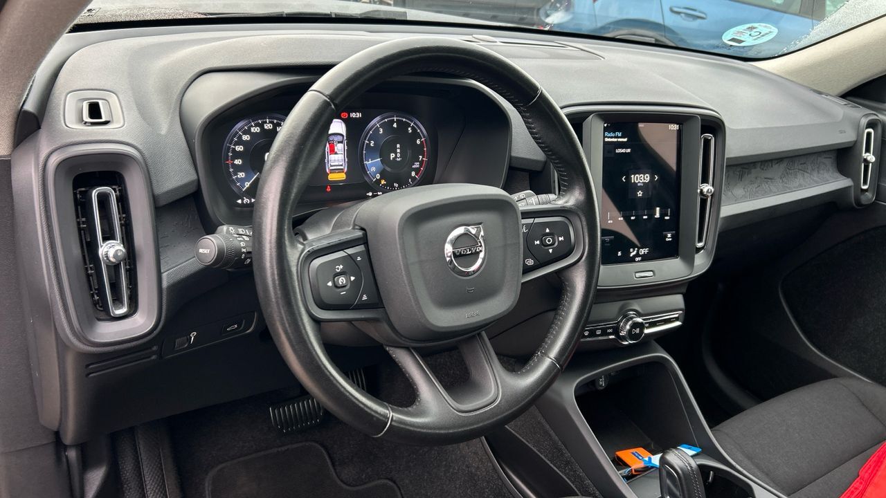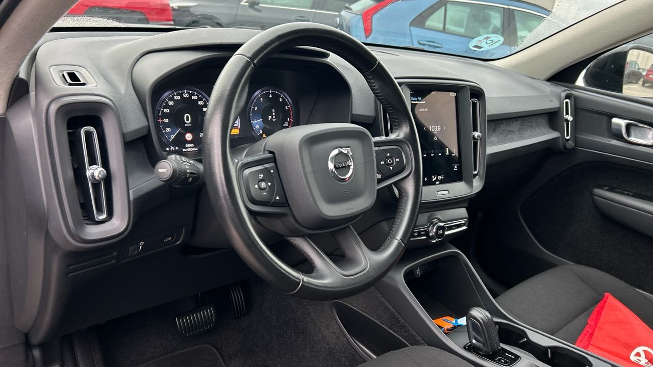 Este Volvo XC40 gasolina de 129 CV, con acabado Momentum Core y cambio automático, ofrece una conducción suave y segura en cualquier entorno. Su motor 1.5 T2 es ideal para quienes buscan un SUV compacto con buen rendimiento y bajo mantenimiento. Con 56.948 km, se encuentra en excelente estado y preparado para seguir ofreciendo confort y fiabilidad. Entre su equipamiento, destacan el sistema multimedia con pantalla táctil, conectividad móvil, climatizador, sensores de aparcamiento y control de crucero. El color negro le aporta una estética elegante y sobria, mientras que el interior combina espacio y calidad en los acabados. Es una opción muy interesante para conductores que valoran el diseño escandinavo, la seguridad y la versatilidad en el día a día. Financiación 100% a tu medida y hasta 3 años de garantía. Aceptamos tu coche como parte de pago, con la máxima tasación tanto presencial como online. ***EQUIPAMIENTO OPCIONAL INCLUIDO*** - Pintura metalizada ***EQUIPAMIENTO SERIE INCLUIDO*** - Cinco plazas ( 2+3 ) - Diez altavoces - Equipo de audio con radio AM/FM. RDS. radio digital. radio por internet y pantalla táctil pantalla a color. 0 y radio reproduce MP3 - Control remoto de audio en el volante - Toma/s de 12v en la zona de carga y los asientos delanteros - Cuatro frenos de disco siendo cuatro ventilados - ABS - Apertura a distancia del maletero con control remoto - Control de crucero - Luces de lectura delanteras - Espejo de cortesía iluminado en conductor en acompañante - Sensores de aparcamiento traseros con radar - Combustible: sin plomo 95 octanos y Combustible primario: gasolina - Acabados de lujo: pomo de la palanca de cambios en cuero - Faros con lente de superficie compleja. bombilla LED y luz larga con bombilla LED - Regulación de los faros con ajuste de altura automático. sensor de luz ambiental y sensor de vehículos en sentido contrario - Encendido diurno automático - Airbag lateral de cortina delantero y trasero - Bandeja trasera rígida - Sujeción de carga - Cierre centralizado con mando a distancia y contról de los elevalunas - Portaequipajes longitudinal en el techo en negro/gris (no pintado) - Airbag frontal del conductor inteligente. airbag frontal del acompañante desconectable y inteligente - Airbags laterales delanteros - Dos reposacabezas en asientos delanteros. tres reposacabezas en asientos traseros ajustables en altura - Cinturón de seguridad delantero en asiento conductor. acompañante y ajustable en altura con pretensores - Cinturón de seguridad trasero en lado conductor con pretensores. cinturón de seguridad trasero en lado acompañante con pretensores. cinturón de seguridad trasero en asiento central de 3 puntos - Asientos de tela (material principal) y de tela (material secundario) - Asiento delantero del conductor y acompañante individual. ajuste longitudinal manual y ajuste manual en altura con ajuste manual del respaldo y ajuste manual de la inclinacion de la banqueta - Compartimento en la guantera y la consola central - Sistema de ventilación con pantalla digital. filtro de pólen y filtro de carbón activo combustión y controles en pantalla táctil - Aire acondicionado de automático - Limpiaparabrisas delantero con sensor de lluvia - Elevalunas eléctricos delanteros y traseros con dos de ellos de un solo toque - Consola en el suelo - Distribución electrónica de la frenada - Sistema de servofreno de emergencia - Indicador de baja presion de los neumáticos - Preparación Isofix - Tarjeta / llave inteligente automática con arranque sin llave y ajustes programables - Sistema activacion por voz del sistema de audio y teléfono - Telemática con 0.00 ( 48 meses incluidos) vía SIM en el vehículo con aviso avanzado automático de colisión y sistema de seguimiento asistencia por avería - Freno mano electrónico - Filtro de partículas - Airbag de rodilla para el conductor - Control de arranque en pendiente - Encendido automático luces emergencia - Sistema de alarma de colisión: activa los cinturones de seguridad y las luces de freno con asistencia de frenado. sistema antiatropello peatones/ciclistas. monitorización del conductor y frenado a baja velocidad de 4 Km/h como mínimo aviso visual/ acústico. distancia programable. funciona por encima de 130 km/h / 78 mph. funciona por encima de 50 km/h / 30 mph. funciona por debajo de 50 km/h / 30 mph y dirección en mitigación colisión peatón - Bluetooth ( incluye música por 'streaming' ) - Start/Stop parada y arranque automático - Alerta de cambio de carril: activa la dirección 200 y 124 - Control de estabilidad del remolque - Conexión para: USB delantero. USB trasero. 1 y 1 - Botón de arranque del vehículo - Limitador de velocidad - Luces de freno. luces de cruce. luces intermitentes laterales. Luces de día. Luces traseras y luces de carretera con tecnología LED - Recuperación de la energía motor - Reconocimiento señales de tráfico - Conexión wi-fi SIM del cliente requerida - Control remoto sistema de aireación HVAC incluye teléfono. 48. incluye calefacción y incluye refrigeración
