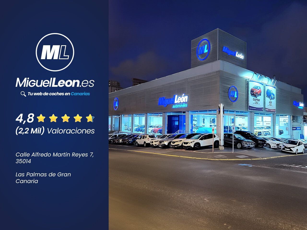 FECHA DE MATRICULACIÓN: 16/11/20 Síguenos en miguelleon.es EQUIPACIÓN TOTALMENTE DETALLADA EN LAS IMÁGENES DEL VEHÍCULO AMPLIACIÓN DE GARANTÍA OPCIONAL VISITA NUESTRAS INSTALACIONES: LAS PALMAS: C/ Alfredo Martín Reyes, 7 (Miller Bajo) TENERIFE: C/ Tijarafe, 25, nave 4-A (Los Majuelos) TELDE: C/ Callejón del Castillo, Nº 215 (Calero Alto) CARRIZAL: C/ Avenida Carlos V, Nº 108 (Ingenio) VECINDARIO: C/Avda. de Canarias, Nº 460 (Doctoral) LANZAROTE: Carretera Arrecife - San Bartolomé, Nº 52 (Arrecife) Mantenimientos realizados en nuestro TALLER OFICIAL, GARANTÍA 12 meses y traspaso incluido, FINANCIAMOS hasta 10 años, tasamos y recogemos su vehículo como parte de pago. Vehículos industriales para empresas con 6 meses de garantía. Fotos reales y equipamiento coincidente con el vehículo anunciado salvo error tipográfico. MIGUEL LEON CONCESIONARIO MULTIMARCA Envío GRATIS a cualquier isla y cubrimos la GARANTÍA: Talleres concertados en: Tenerife: Autotalleres Kiko, Abona Motor, Taller San Alfonso Lanzarote: Taller David Hernández Fuerteventura Taller Seinauto, Autoservicio Maxorata La Palma Taller Marino Morales La Gomera Taller AM Gomerauto SL El Hierro Taller Anteza Ver sin compromiso por su mecánico de confianza, NOS ADAPTAMOS A SU HORARIO. REF: G1087 CB
